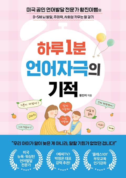 『하루 1분 언어자극의 기적』은 남매를 미국 어린이집에 보낸 저자가 밥 먹이고 빨래 개며 걸었던 말로 아이들의 모국어 발달을 앞당긴 비결을 담고 있다. 하루에 하나씩 실천하면 아이가 안 하던 인사를 하고, 혼자 놀이를 하고, 떼쓰는 대신 자신의 의사를 표현하게 될 것이다. 이 책은 코로나19에 아이와 주로 집에 있었던 부모, 아이 뇌 발달을 돕고 싶은 부모들을 위한 필독서다.