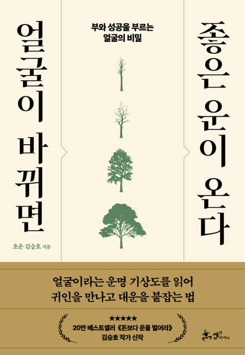 오랜만에 만난 사람들은 딱 알아본다. 내 얼굴이 밝아졌는지, 어두워졌는지, 없던 상처가 생겼는지, 아니면 뭔가 콕 짚어 말할 수 없는 좋은 변화가 있는지를 누구나 느낀다. 얼굴은 세월에 따라 변할 수밖에 없고 또 많이 변할수록 좋다. 그만큼 운명에 활력이 있다는 의미이기 때문이다. 20만 독자의 사랑을 받은 《돈보다 운을 벌어라》의 저자 초운 김승호 선생이 신작 《얼굴이 바뀌면 좋은 운이 온다》에 ‘부와 성공을 부르는 얼굴의 비밀’을 공개했다.