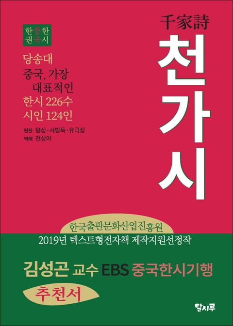 수천년 동안 서로에게 영향을 주고 받으며, 문화적 접점이 많았던 이웃인 중국.... 동아시아 한자문화권에 속한 우리와 중국은 문학적 교류 또한 활발했다. 특히 한시가 그러했다. 당송 시대 대표적인 시들을 모아 편찬한 천가시... 선명하면서도 유려한 번역과 풀이를 통해 옛 선인들이 남긴 주옥 같은 한시들을 음미하며, 이 책을 읽는 모든 이들이 바쁘게 살아가는 생활 속에서 소중한 쉼을 누렸으면 좋겠다.^^