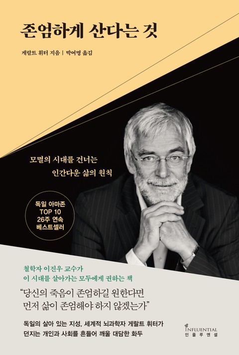 인간은 누구나 존중받고 보호받고자 하는 욕구를 타고나지만, 살아가는 동안 만나는 타인과 공동체의 수많은 요구 속에 방향을 잃고 휘청거리게 된다. 이는 인간의 두뇌가 평생에 걸쳐 타인과의 관계 속에서 학습하고 구조화되는 ‘사회적 기관’이기 때문이다. 독일을 대표하는 지성, 저명한 신경생물학자 게랄트 휘터는 뇌가 이러한 혼란 상태를 벗어나 내면의 질서를 바로 잡기 위해서는 일종의 나침반이 필요하다고 말한다. 바로 ‘존엄’이다. ‘존엄’은 당연한 권리가 아니라, 개인과 사회가 의미를 지켜 나가는 오랜 과정 속에서 형성되는 뇌의 사고 패턴이자 삶의 태도를 말한다. ‘인간다운 삶, 품격 있는 삶이란 무엇인가’라는 질문 앞에 게랄트 휘터가 필생의 연구에서 길어 올린 통찰을 담은 이 책은 혼란의 시대 속에 삶을 강인하게 버텨낼 용기를 전해줄 것이다.