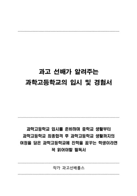 • 과고 선배가 알려주는 과학고등학교의 입시 및 경험서 (과고선배롤스)
