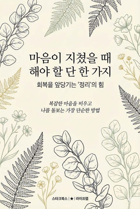 이 책은 심리적 소진 상태에서 벗어나는 구체적인 방법으로 ‘정리’라는 행위를 제시합니다. 이는 단순히 물리적 공간을 정돈하는 것을 넘어, 복잡한 생각과 감정, 그리고 소모적인 인간관계를 체계적으로 정리하는 과정을 통해 내면의 질서를 회복하는 길을 안내합니다. 제시된 단계별 가이드를 통해 불필요한 감정 소모의 근본 원인을 파악하고, 이를 제거함으로써 명확한 자기 이해에 도달할 수 있습니다. 이는 곧 회복의 시간을 단축시키는 효과적인 전략이 됩니다. 분산된 정신적 에너지를 삶의 핵심적인 부분에 집중시켜 주도권과 활력을 되찾는 구체적인 청사진을 얻게 됩니다.