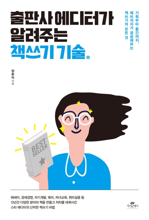 에세이, 경제경영, 자기계발, 육아, 자녀교육, 취미실용 등 13년간 다양한 분야의 책을 만들고, 저자를 데뷔시킨 스타 에디터가 책쓰기 기술을 알려준다. 도서 기획부터 집필 출판사 선택과 출간 후 홍보까지, 예비저자가 책쓰기에 대해 알고 싶어 하는 모든 것을 담았다. 철저히 상업출판을 하는 출판사의, 꽤나 많은 베스트셀러와 스테디셀러를 만든 베테랑 에디터로서 책을 쓰고 싶은 사람들에게 무엇을 고민하고 어떻게 써야 하는지 그 디테일한 방법을 낱낱이 알려주고자 한다.