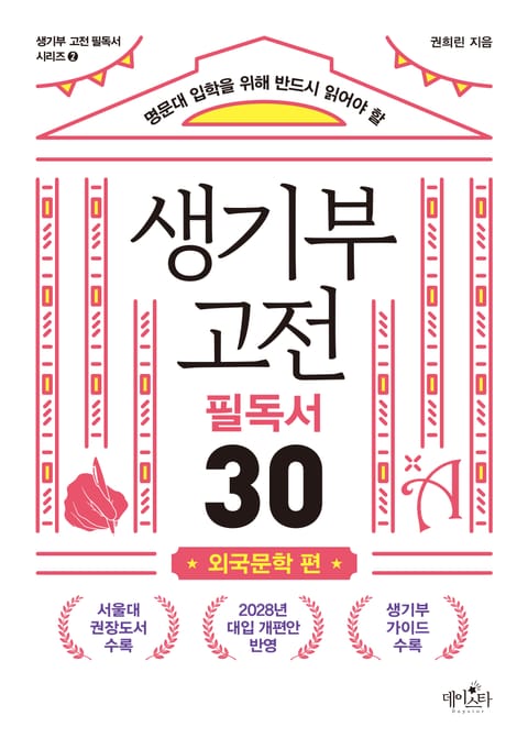 최근 교육과 입시 제도의 흐름이 급격히 바뀌고 있다. 이는 우리 사회와 대학이 원하는 인재상이 달라지고 있다는 의미이기도 하다. 대학, 특히 최상위권 대학들은 이제 인지 능력만이 아니라 공동체 내에서 활발히 소통하고 협력할 수 있는 전인적이며 통합적인 인재를 원한다. 이러한 역량을 키우기 위해서는 어떻게 해야 할까? 빠르게 변화하는 세상에서 변하지 않는 가치를 발견하고, 근본적인 질문과 답을 찾아 문제를 해결하고, 사물이나 현상을 통찰할 수 있는 능력을 기를 수 있는 가장 빠른 방법은 바로 독서, 그중에서도 ‘고전 읽기’다. 《생기부 고전 필독서 30》 시리즈는 다양한 고전 읽기를 통해 학생들이 통합적이고 전인적인 역량을 키울 수 있도록 돕기 위해 기획되었다. 고전의 중요성에 공감하는 현직 교사 6명이 한국 문학, 외국 문학, 경제, 과학, 역사, 철학 등 다양한 분야의 대표적인 고전 작품 180편을 엄선했다. 국내 굴지의 대학들이 제시하는 권장 도서 혹은 필독 도서를 중심으로, 학생들이 반드시 살펴보아야 할 대표적인 작품들을 담았으며, 특히 2022 개정 교육과정과 2028 대입 개편안 시행을 앞두고 학교생활기록부에 교과 세부 능력 및 특기 사항의 중요성이 커지고 있는 교육 현장의 변화를 반영했다. 이번 시리즈의 두 번째 책인 《생기부 고전 필독서 30 외국문학 편》은 문학적 가치와 더불어 학생들의 삶과 사유에 깊은 통찰을 제공할 수 있는 서른 권의 작품을 오롯이 담았다. 각 작품들은 서로 다른 시대와 문화적 배경을 토대로 하고 있지만, 인간 존재의 본질이나 도덕적 갈등, 사회적 부조리 등 시대를 초월해서 사유해볼 만한 보편적인 주제를 다루고 있어 읽는 것만으로도 누구에게나 성장의 기회를 제공한다. 특히 학생들이 작품을 입체적으로 읽을 수 있도록 교과와 연계하여 활용할 수 있는 탐구 주제와 방향, 학교생활기록부의 진로 활동 및 세특에 반영할 구체적인 예시와 방법도 소개하고 있어, 독서와 연계하여 학생부종합전형을 대비할 수 있는 최고의 방법이 되어 줄 것이다.