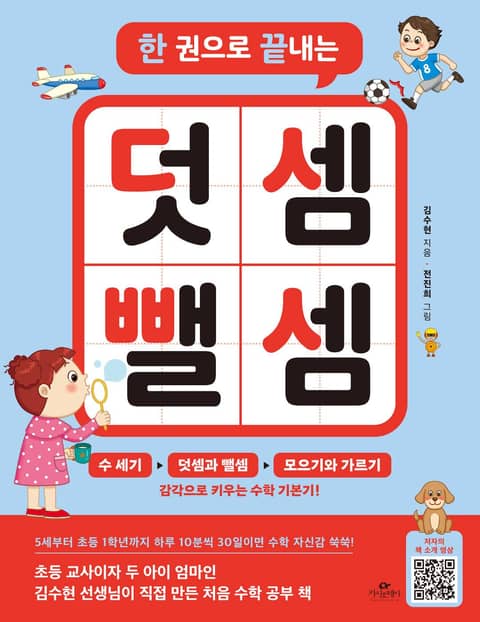 『한 권으로 끝내는 덧셈 뺄셈』은 유·초등 학습 분야 베스트셀러 『한 권으로 끝내는 한글 떼기』, 『한 권으로 끝내는 받아쓰기』를 펴낸 김수현 선생님이 직접 만든 처음 수학 공부 책입니다. 수학을 가르치는 초등 교사이자, 두 아이의 엄마로 김수현 선생님은 늘 고민했습니다. ‘수학에 쏟는 시간과 돈이 그렇게 많은데 대체 어디서부터 잘못된 걸까? 원인을 잘 모르겠다면 아예 처음으로 돌아가 수학이 쉽고 재미있다는 사실을 알려주면 되지 않을까?’ 아이들이 처음 배우는 수학은 복잡한 공식을 외워야 하는 것도, 어려운 문제를 풀어야 하는 것도 아닙니다. 태어나면서부터 지닌 수에 대한 감각, 즉 몇 살이냐고 물어보았을 때 자연스럽게 손가락을 펴 보이는 행동이 수학의 시작입니다. 이러한 수 감각을 극대화하려면 어떻게 해야 할지 연구를 거듭한 결과, 직접 ‘처음 수학 첫 번째, 감각으로 배우고 익히는 수 세기와 덧셈 뺄셈’이라는 커리큘럼을 계획해 교재로 만들었습니다. 하루 10분, 이 책과 함께하면 덧셈 뺄셈 공부는 충분합니다!