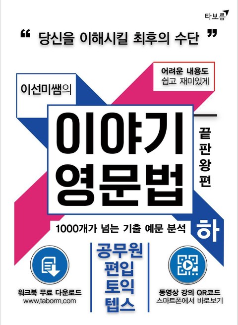 기초가 부족한 수험생들도 차근차근 이해할 수 있게 이야기하듯 설명을 해며 암기가 필요한 부분은 표로 깔끔하게 정리를 해놓았다. 참고서로서의 효율을 극대화하기 위해 문제는 포함되어 있지 않다. 하지만 출판사 홈페이지(www.taborm.com)에서 3000개 이상의 문제가 수록된 워크북을 무료로 다운받을 수 있다. 또한 기초가 없는 학생들을 위한 저자 직강의 무료 동영상도 접할 수 있으며 저자 개인 블로그에서 영어에 대한 피드백도 받을 수 있다.