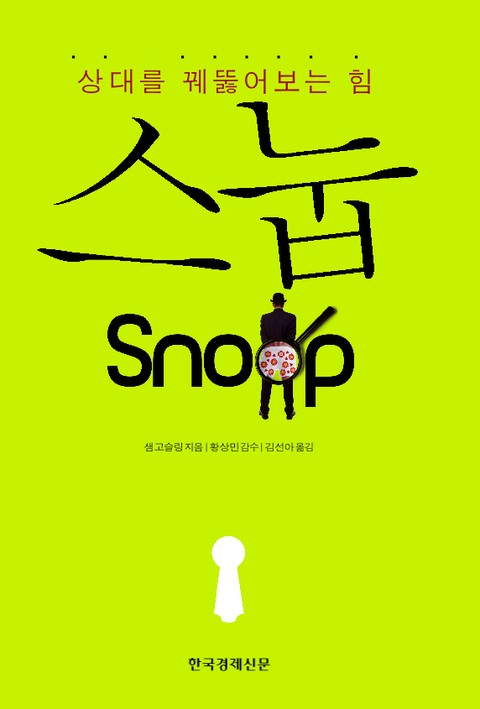 '스눕'의 저자인 샘 고슬링 박사는 특정 개인과 관련된 장소를 통해 개인의 성향이나 이미지를 파악할 수 있는 노하우를 다양한 사례를 들며 흥미롭게 소개한다. 이 책을 통해 우리는 이런 사소한 물건들을 해석해 그것들의 주인이 가진 성격, 즉 외향적인지 내성적인지, 친절한지 깐깐한지, 성실한지 나태한지, 의지가 강한지 약한지 파악해내는 방법을 알게 된다.