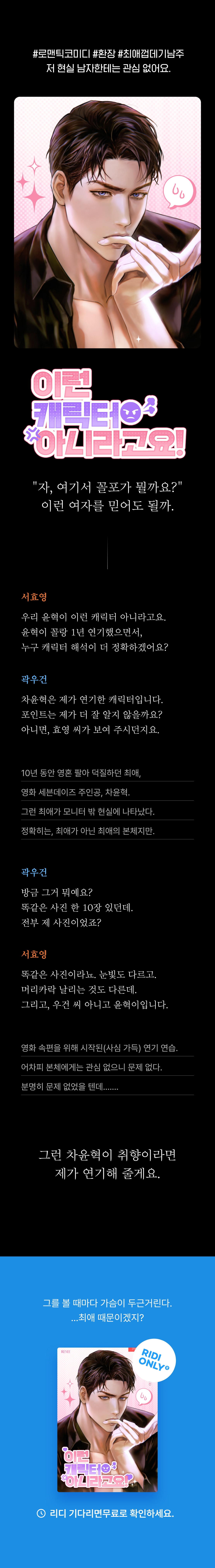 • 키워드가 취향이라 시작해봅니다 완결 론칭이라 더 좋네요 여주 귀엽고 달달한 로코네요 재미있어요
