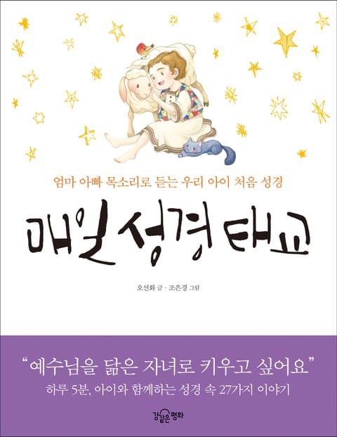 《매일 성경 태교》는 이런 질문에서 시작된 책입니다. 이 책은 성경 속 27가지 이야기를 동화로 각색해 소개하는 것뿐만 아니라 태담, 기도문, 감사 일기 등 산모가 지루하지 않게 10개월간의 태교를 할 수 있도록 구성했습니다. 또한 출산 후에도 아이에게 들려줄 수 있는 성경 이야기를 마련했습니다. 모든 글에는 아이의 두뇌 발달에 도움이 되는 의성어·의태어가 충분히 등장하고, 시종 부모가 이야기하듯 흐르는 작가 특유의 입말체 문장 또한 이 책의 장점입니다.