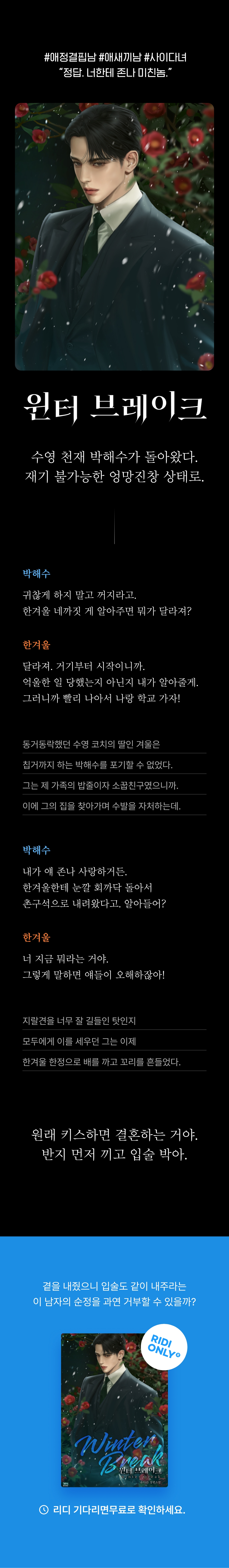 어릴때부터 인연이며 주인공들의 서사가 너무 서술이 잘되어있어 읽기 수월했네요 그리고 해수의 전부가 될 수밖에 없는 겨울이가 너무너무 맘에 꼭 들어요
