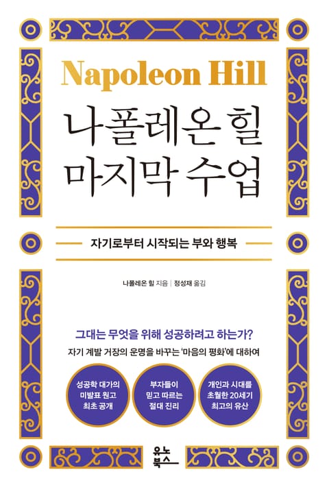 지금 당신의 내면을 들여다보라. 그곳에 마음의 평화가 있는가? 성공을 꿈꾸고 있다면, 부와 행복을 아우르는 궁극적인 삶의 원칙을 알고 싶다면, 이를 통해 자신의 운명을 새롭게 시작하고 싶다면, 나폴레온 힐의 마지막 수업을 놓치지 마라. 마음의 평화를 지속해 가장 위대한 성공으로 향하는 발판을 마련할 수 있을 것이다.