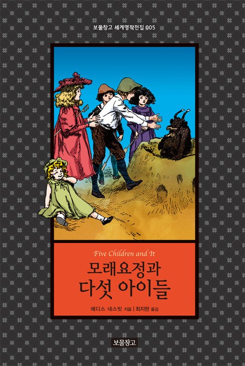 <보물창고 세계명작전집>은 단지 문학 작품만을 읽는 책이 아니다. 완역한 작품의 적지 않은 분량에 부담을 느끼지 않고 잘 소화할 수 있도록 작가 소개·작품 해설·사진·그림 등 풍부한 자료를 덧붙여 읽는 즐거움과 더불어 보는 즐거움까지 배가되게 하였다. 감명 깊게 읽은 책을 오래오래 간직하거나 소중한 이들에게 선물하여 함께 나눌 수 있도록 단단하고 맵시 있는 양장본으로 만들었다. <보물창고 세계명작전집>은 우리 아이들과 청소년들에게 독서의 기쁨과 보람뿐 아니라 10년, 20년 아니 수십 년 후 어른이 되어서도 잊지 못할 독서의 추억까지 선사할 것이다. <보물창고 세계명작전집>이 다섯 번째로 소개하는 작품 『모래요정과 다섯 아이들』은 아직 국내 독자들에게 널리 알려지지 않은 숨은 명작으로 어린 독자들에게는 신 나는 모험과 환상의 세계를, 어른들에게는 추억 속 모래요정의 새로운 매력을 만날 수 있는 의미 있는 작품이 될 것이다.