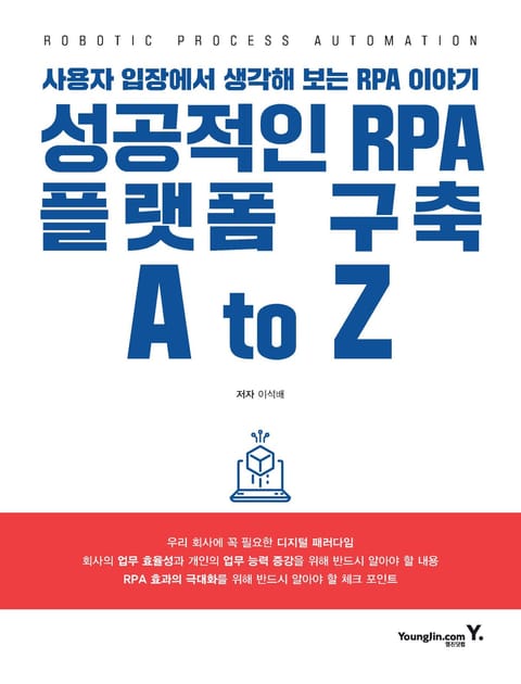『성공적인 RPA 플랫폼 구축 A to Z』는 RPA 프로젝트를 추진함에 있어 사용자 입장에서 가장 편리하고 유익한 방향을 제시하며, RPA 신규 도입이나 RPA 업무의 확대 또는 RPA 업무를 잘 운영하기 위해 어떠한 점을 고려해야 하는지를 단계별로 구분하여 RPA 도입 전 준비 사항, RPA 프로젝트 개발 및 운영 단계, 그리고 RPA의 현재와 미래에 관한 내용이 알차게 수록되어 있다.