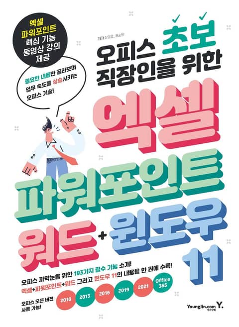모든 버전(2010, 2013, 2016, 2019, 2021 365)에서 사용 가능한 오피스 통합 도서이다. 오피스 까막눈을 위한 193가지 오피스 & 윈도우 11 핵심 내용을 한 권에 담은 도서이다. 엑셀과 파워포인트 핵심 기능은 동영상 강의로 반복 학습이 가능하도록 구성한 도서이다.