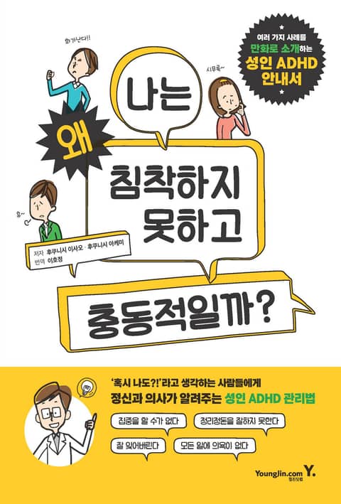 이 책은 성인기 ADHD 또는, ADHD의 특성으로 인해 일상생활에 무엇인가 알 수 없는 어려움을 느끼고 있는 사람(이하, ADHD인 사람이라고 부른다)과 또 그 가족들을 위하여 다양한 사례를 만화로 풀어 설명하고 있기 때문에, 시각적, 직관적인 정보 전달에 큰 도움이 될 것이다.