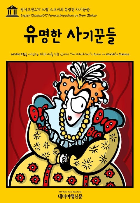 유명한 사기꾼들(Famous Impostors by Bram Stoker)(1910)은 브램 스토커의 마지막 논픽션이자 네 번째 논핀셕 작품으로, 제목 그대로 역사상 실존했던 사기꾼과 사기 사건 혹은 사기를 저지른 것으로 추정되는 유명인 등을 소재로 하고 있습니다. 기존에 허구적인 소재의 공포 소설과 고딕 소설을 즐겨 썼다는 점을 감안하면, 작가 브램 스토커의 색다른 면모를 엿볼 수 있는 작품으로 영국과 미국에서 각각 출판되었습니다. 그러나 사기에 관한 명확한 결론을 내리는 이야기라기 보다는, 사기에 관련한 주요 사건을 수집해 요약서술하는 수준에 그치기 때문에 진지하게 읽기보다는 가십거리로 접근할 만한 일종의 잡록(雜錄) 겸 편집본입니다. 테마여행신문 TTN Korea 영어고전(English Classics)과 함께 어제도, 오늘도, 내일도 멋진 문학여행을! B