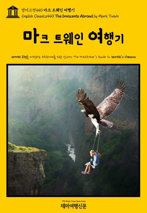 마크 트웨인의 대표작은 뭐니뭐니 해도 허클베리 핀의 모험(The Adventures of Huckleberry Finn by Mark Twain)(1884)과 톰 소여의 모험(The Adventures of Tom Sawyer by Mark Twain)(1876)이지만, 미국에서는 그에 못지 않게 그의 ‘실제 여행기’도 큰 사랑을 받았습니다. 마크 트웨인은 스스로도 미국 국내를 비롯해 유럽과 중동, 아프리카는 물론 적도까지 누빈 세계여행자로, 적지 않은 여행기를 발표한 여행작가로써 왕성하게 활동하였습니다. 그중에서도 마크 트웨인 여행기(The Innocents Abroad by Mark Twain)(1869)는 그의 저서 중 가장 대중적인 사랑을 받았을 뿐 아니라(the best-selling of Twain's works during his lifetime), ‘인류 역사상 가장 많이 판매된 여행기(one of the best-selling travel books of all time)’ 중 하나로 꼽히는 작품으로 국내에도 번역 출간되었습니다. 1867년 증기유람선 퀘이커 시티호(USS Quaker City)를 타고, 청년 마크 트웨인이 5개월에 걸쳐 유럽과 지중해, 그리고 중동과 아프리카까지 구석구석 탐방한 여행기의 세계로 당신을 초대합니다. 테마여행신문 TTN Korea 영어고전(English Classics)과 함께 어제도, 오늘도, 내일도 멋진 문학여행을! B
