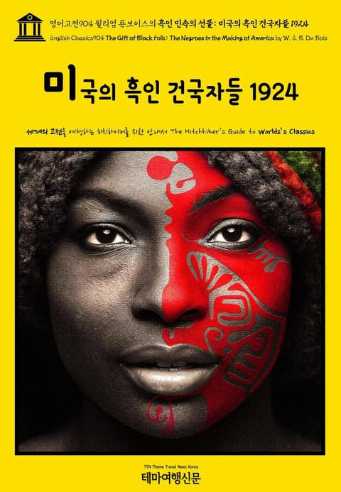 ▶ 흑인 민속의 선물: 미국의 흑인 건국자들(The Gift of Black Folk: The Negroes in the Making of America by W. E. B. Du Bois)(1924)은 윌리엄 듀보이스(W. E. B. Du Bois)(1868~1963)가 사회학자이자 노예제 해방론자, 교수로 왕성하게 활동하며 54세의 나이에 발표한 작품입니다. 흑인에 대한 인종적인 편견과 차별을 철폐하자는 기존의 작품을 초월한 시각을 선보인다는 점에서 매우 중요한 가치가 있습니다. 윌리엄 듀보이스는 흑인 민속의 선물: 미국의 흑인 건국자들(1924)을 통해 미국을 건국하기 위해 공헌한 흑인의 역사를 기반으로, 흑인 또한 당당한 미국인의 일부라는 점을 설파하였습니다. 흑인에 대한 대중의 시각을 ‘가혹한 노예무역의 피해자’란 동정적인 시각에서 ‘미국 건국에 공헌한 영웅들’로 전환하고자 시도했다는 점에서 기념비적인 작품이 아닐 수 없습니다. 서두에 여러 통계에 기반을 둔 Edw. F. McSweeney, LL. D.의 미국에 대한 인종적 공헌(THE RACIAL CONTRIBUTIONS TO THE UNITED STATES)이 첨부되어 있습니다. 테마여행신문 TTN Korea 영어고전(English Classics)과 함께 어제도, 오늘도, 내일도 멋진 문학여행을! B