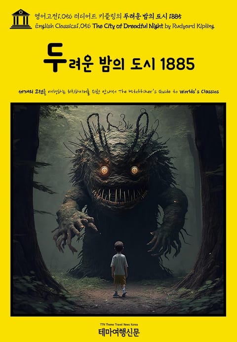 ▶ 영어고전1,056 러디어드 키플링의 두려운 밤의 도시 1885(English Classics1,056 The City of Dreadful Night by Rudyard Kipling)는 19세기 영국의 소설가 겸 시인 러디어드 키플링(Rudyard Kipling, 1865~1936)의 작품으로 일러스트레이터 찰스 D. 패런드(Charles D. Farrand)의 삽화 두 점이 포함되어 있습니다. 키플링은 1865년 영국이 지배하던 인도 제국 뭄바이(Mumbai)에서 출생한 작가로써 (비록 인도에서 머문 기간이 길지는 않았음에도 불구하고) 평생 인도를 비롯한 아시아를 배경으로, 인도인을 포함한 아시아인이 주인공으로 활약하는 작품을 다수 발표하며 ‘이국적인 아시아를 그린 인도 태생의 영국작가’로써 대중적인 인기를 누렸습니다. 두려운 밤의 도시 1885(The City of Dreadful Night) 또한 인도의 어딘가 혹은 캘커타(Calcutta)를 배경으로 하는 (딱히 연결된다고 볼 수 없는) 8편의 짤막한 글을 모은 작품집으로 두 편의 삽화와 한 편의 시가 포함되어 있습니다. 테마여행신문 TTN Korea 영어고전(English Classics)과 함께 어제도, 오늘도, 내일도 멋진 문학여행을!