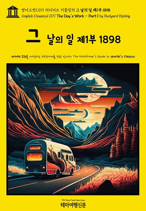 ▶ 영어고전1,071 러디어드 키플링의 그 날의 일 제1부 1898(English Classics1,071 The Day's Work - Part 1 by Rudyard Kipling)은 19세기 영국의 소설가 겸 시인 러디어드 키플링(Rudyard Kipling, 1865~1936)의 단편 소설 모음집(The Collection of Short Stories)입니다. 그 날의 일 제1부 1898(The Day's Work - Part 1 by Rudyard Kipling)에는 8편이, 그 날의 일 1898(The Day's Work by Rudyard Kipling)에는 13편의 작품이 실려 있으며, 7편의 작품이 중첩됩니다. 전작의 경우 교량-건설자들(The Bridge-Builders)부터 아버지의 아들(The Son Of His Father)까지 여덟 편의 작품 중 후자와 중복되지 않는 작품은 아버지의 아들 1893(The Son Of His Father by Rudyard Kipling) 단 한 작품입니다. 테마여행신문 TTN Korea 영어고전(English Classics)과 함께 어제도, 오늘도, 내일도 멋진 문학여행을!