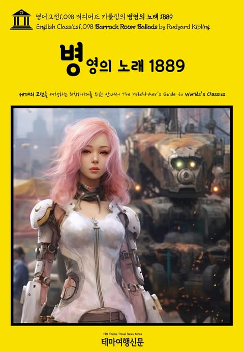 ▶ 병영의 노래 1889(Barrack Room Ballads by Rudyard Kipling)는 빅토리아 시대 후기의 영국군(the late-Victorian British Army)과 직간접적으로 관련 있는 주제의 전쟁 시(War Poetry)를 모아 놓은 시집(Poetry)입니다. 예상하시겠지만 (19세기의 영국인으로써) 영국 군인을 비롯한 동맹군의 사기를 북돋고, 그들에 대한 자국민의 관심과 지지를 호소하기 위한 목적으로 집필된 작품입니다. ‘단편소설의 제왕’이나 ‘정글북의 창조자’가 아닌, 저널리스트이자 애국주의자로써의 키플링의 면모를 확인하고픈 독자에게 추천합니다. 테마여행신문 TTN Korea 영어고전(English Classics)과 함께 어제도, 오늘도, 내일도 멋진 문학여행을!