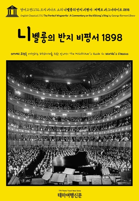 ▶ 니벨룽의 반지 비평서: 퍼펙트 바그너라이트 1898(The Perfect Wagnerite: A Commentary on the Niblung's Ring by George Bernard Shaw)은 ‘셰익스피어 이후 최고의 극작가(The Greatest Playwright after Shakespeare)’로 추앙받는 19세기 영국 극작가 조지 버나드 쇼(George Bernard Shaw, 1856~1950)가 풋풋한 청년 시절(1879~1883)을 지나 한층 원숙한 나이(42세)에 집필한 철학적 논평(Philosophical Commentary)입니다. 논평의 대상은 독일의 세계적인 거장 작곡가 빌헬름 리하르트 바그너(Wilhelm Richard Wagner, 1813~1883)의 니벨룽겐의 반지(Der Ring des Nibelungen, 1876)! 영국의 걸출한 희곡 작가 바그너 쇼는 과연 독일 작곡가 바그너의 걸작을 어떻게 분석하고, 어떻게 평가했을까요? 테마여행신문 TTN Korea 영어고전(English Classics) 1,999선과 함께 어제도, 오늘도, 내일도 멋진 문학여행을!