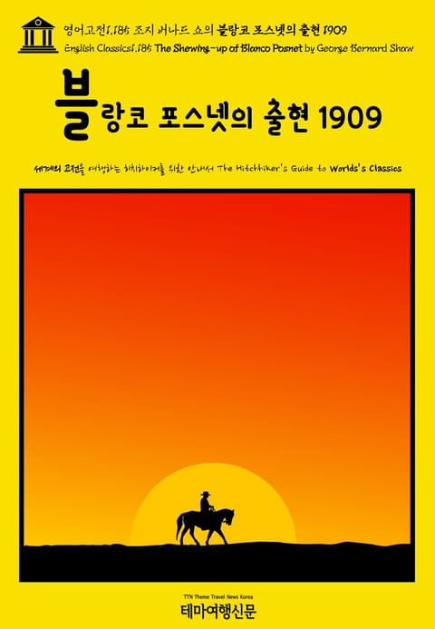 ▶ 블랑코 포스넷의 출현 1909(The Shewing-up of Blanco Posnet by George Bernard Shaw)는 ‘셰익스피어 이후 최고의 극작가(The Greatest Playwright after Shakespeare)’로 추앙받는 19세기 영국 극작가 조지 버나드 쇼(George Bernard Shaw, 1856~1950)가 풋풋한 청년 시절(1879~1883)을 지나 한층 원숙한 나이(53세)에 집필한 단막극(One-Act Play)입니다. 버나드 쇼의 대표작은 단연 희곡(戱曲, Play)일 것이나, 경력 초창기에는 다섯 권의 소설(Five Novels Early in His Career)을 비롯해 정치, 드라마 비평(Politics, Drama Criticism) 등 다양한 분야의 글을 왕성하게 집필한 바 있습니다. 테마여행신문 TTN Korea 영어고전(English Classics) 1,999선과 함께 어제도, 오늘도, 내일도 멋진 문학여행을!