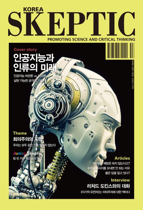 인공지능은 인간의 생활을 한 단계 높은 차원으로 이끌 것인가, 아니면 조금씩 인간의 자리를 빼앗고 지구의 새로운 주인이 될 것인가? 이번 『스켑틱』 3호 커버스토리에서는 ‘인공지능과 인류의 미래’에 대한 기사들을 통해 이 같은 물음에 대해 살펴보고자 한다. 먼저 ‘인공지능과 크렐 머신의 귀환’에서는 궁극에 도달한 첨단 기술의 세계에 과연 인류도 초대받을 수 있을지 전망해본다. 이어지는 두 글에서는 인공지능의 실현 가능성에 대한 상반된 두 입장인 낙관론과 비관론을 대비해서 살펴본다.