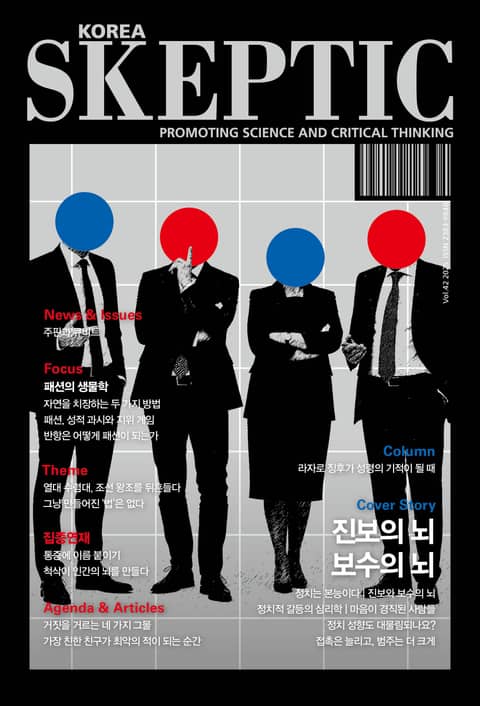 극단으로 치닫는 정치적 갈등의 뿌리는 어디에 있을까. 진보와 보수의 뇌가 다른 이유부터 정치 성향의 대물림까지, 이데올로기의 심리적 기반과 메아리 방을 넘어 공감의 반경을 넓히는 길. 패션은 전적으로 문화의 산물일까? 성적 과시와 지위 게임으로 읽는 패션의 생물학, 자연계의 치장 전략부터 반항이 스타일이 되는 메커니즘까지. 주판으로 이해하는 양자컴퓨터의 계산 원리, 열대 수렴대가 조선 왕조의 운명을 바꾼 기후사의 비밀, 의미 없는 통증에서 벗어나 통증에 이름을 붙인다는 것, 척삭동물에서 시작된 인간 뇌의 진화 서사. 거짓을 거르는 생각 도구와 라자로 징후를 통해 본 우연에 의미를 부여하는 인식의 함정까지, 흥미로운 기사로 가득한 스켑틱 42호.