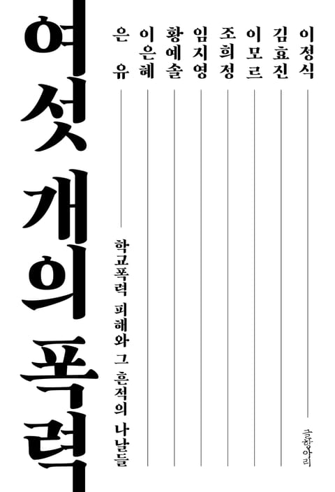 서문을 쓴 은유 작가는 이 책을 여섯 개의 자책, 여섯 개의 외면, 여섯 개의 용기로 읽었다. ‘왜 하필 나인가.’ 폭력을 당하는 아이들에게 치미는 첫 물음은 이것이다. 둘째, 외면. 모든 폭력은 가해자, 피해자의 이자 구도가 아니다. 가해자, 피해자, 방관자가 있을 때 성립된다. 여섯 명의 필자는 지나가는 아저씨, 주변 어른, 부모, 선생님께 도움을 요청했지만 그들은 대수롭지 않게 여겼고, 결국 어른들의 공고한 침묵과 외면, 무감각으로 아픔은 더 커졌다. 셋째, 용기. 고독과 고통의 담금질을 견디고 나온 이야기는 언제나 진실함으로 압도한다. 필자들은 과거를 똑바로 직시하고 두려울 것 없는 대담함으로 써내려갔다. 따라서 『여섯 개의 폭력』은 여섯 사람의 용기에 빚을 지는 가운데 “어디선가 숨어서 울고 있을 많은 승민이들”에게 위로를 건네며, 자기 존엄을 지키는 가장 정직한 방법은 타인의 존엄을 지켜주는 것임을 다시 한번 뼈에 새기도록 한다.