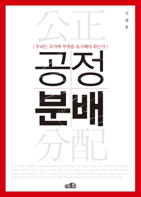 이 책은 2008년 글로벌 금융위기 이후 장기간 지속되고 있는 한국경제의 침체 원인을 분배의 관점에서 진단한다. 그리고 현재 시점에서 경제위기의 극복을 위해 국가가 해야 할 가장 시급하고 중요한 일은 공정한 소득 분배, 주택 시장의 거품 제거, 국가가 아이를 양육을 책임지는 것이라고 말한다. 또한 그 이유는 무엇이고 해결방법은 무엇인지도 제시한다. 그리고 중산층 이하 서민이 지금보다 더 나은 세상에서 살아가기 위해서 우리(국민)가 국가에 어떤 경제정책의 추진을 요구해야 하는지 이야기한다.