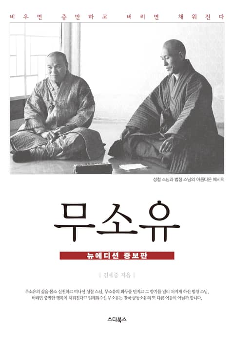 우리에게 큰 스승이신 성철 스님이 입적하신지도 30년이 지났고, 법정 스님이 입적하신지도 내년이면 15주기가 된다. 이 책 ‘무소유’는 삼십 만부를 돌파하며 꾸준히 독자들의 사랑을 받고 있는 스터디셀러가 되었다. 이에 독자들의 요청과 응원으로 2개의 장을 새로 증보하여 정리했다. 성철 스님과 법정 스님은 불교계를 비롯한 우리 사회의 대표적인 스승이셨다. 스스로를 맑고 향기롭게 삶의 진리를 구하던 두 스님의 모습은 혼탁한 사회를 깨치는 종소리와도 같았고 두 분에 대한 존경과 신뢰는 종교를 넘어서는 것이었다.