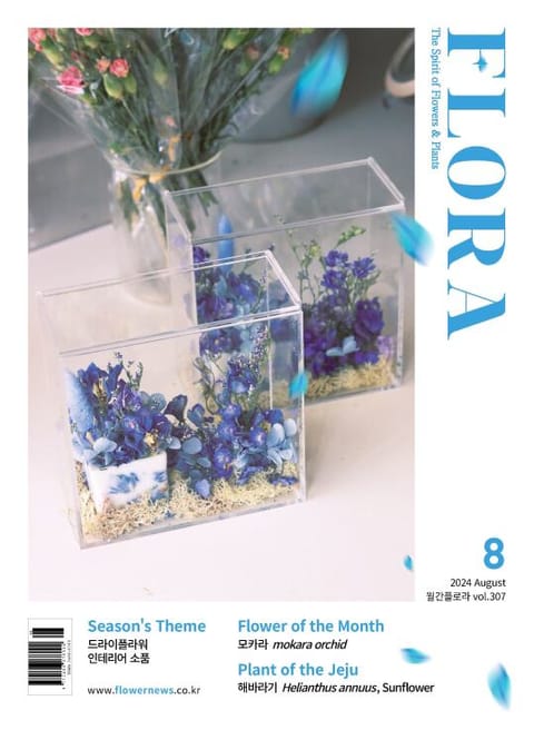 2024년 8월호 시즌테마는 드라이플라워 인테리어 소품입니다. 11명의 작가진의 작품을 플로라 8월호에서 공개합니다. 작가들의 감각적인 디자인을 플로라에서 직접 만나보세요.