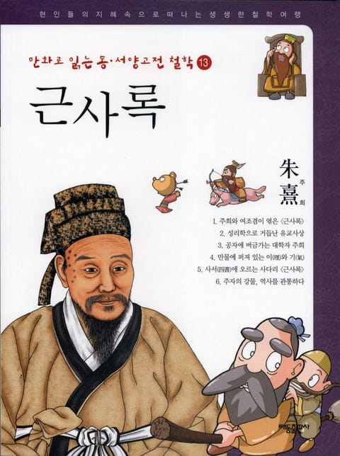 13권 『근사록』에서는 중국 송나라 때의 유학자 주희의 사상을 재미난 만화로 알아봅니다. 주희의 생애와 그가 살았던 시대를 알아보고, 주자가 성리학을 주창하는 데에 사상적 기반이 된 내용들에 대해 알아봅니다