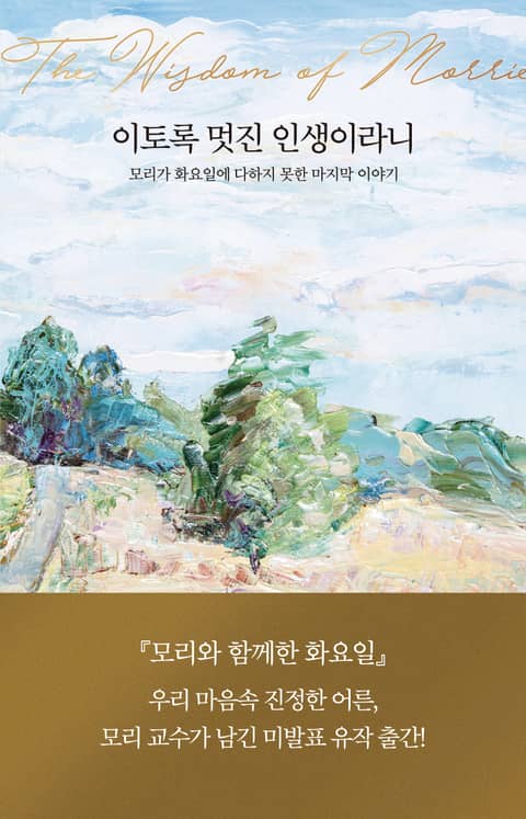 전 세계 4000만 독자가 사랑한 『모리와 함께한 화요일』Tuesdays with Morrie의 모리 슈워츠 교수가 학자가 아닌 작가로서 독자들에게 남긴 처음이자 마지막 책이다. 사회학자이자 심리치료사 그리고 한 사람으로서 누구도 소외받지 않으며, 환경으로 평가받지 않는 세상을 꿈꿨던 모리 교수는 삶을 마지막 날까지 성장할 수 있는 무한한 가능성과 기회의 시간이라 보았다. 나이 듦은 태어난 이상 누구나 겪는 자연스러운 과정이다. 앞으로 주어질 시간을 그 누구도 아닌 ‘내가 바라는’ ‘자기만의 세계’로 완성한다면 생의 어느 단계에 있든 큰 행복과 만족을 얻을 수 있다. 『모리와 함께한 화요일』에서 세상, 가족, 죽음, 자기 연민, 사랑에 대해 미치 앨봄의 목소리로 대신 전해 들었던 영혼의 가르침을 모리 교수의 육성으로 직접 만나는 특별한 기회가 될 것이다.