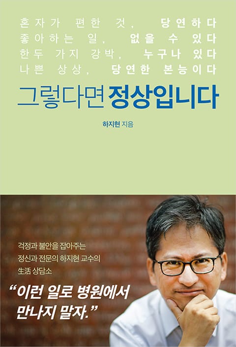 20년차 정신과 전문의인 하지현 교수가 진료실에서 만나는 사람들도 크게 다르지 않다. 반드시 치료가 필요한 사람들이 ‘나는 아무 문제가 없다’고 우겨 가족들에게 끌려오는가 하면 지극히 정상적인 사람들이 찾아와서 ‘나한테만 자꾸 나쁜 일이 생긴다. 나는 정상이 아닌 게 분명하다’고 호소하는 경우가 허다하다.