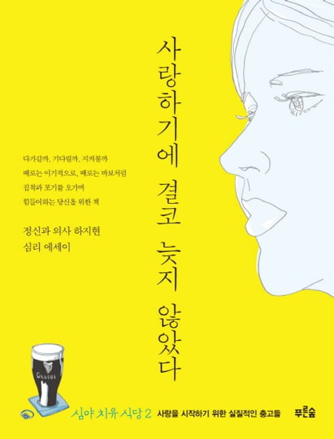 ‘당신은 너무 열심히 살고 있다. 잠시 멈춰 서서 숨고르기가 필요하다’는 메시지로 현대인의 불안한 마음을 치유해준 정신과 전문의 하지현의 신작이 출간되었다. 픽션 형식을 도입한 심리 에세이 《사랑하기에 결코 늦지 않았다》는 심야 치유 식당 ‘노사이드’에 찾아온 손님들의 사랑 문제를 다룬다. 애매모호한 관계를 지속하는 힘, 사랑의 기준점으로서의 첫사랑, 수동적인 관계에 끌려다니지 않고 사랑하는 법, 고백이라는 단어에 담긴 의미와 신화, 그리고 결혼에 대해 우리가 두려워하는 것들…… 저자는 사랑의 단계마다 노사이드의 주인 철주의 입을 빌려 실질적인 해결책을 제시한다.