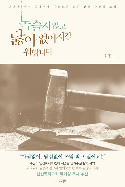 주님을 바라봄으로 바라보는 주님을 그대로 닮아가기를 간절히 소망한다. 그래서 닮아 있다. 죽기까지 순종하심으로, 생명을 내어주신 십자가의 그 사랑으로 천명을 감당하신 예수님을 따라 녹슬지 않고 닳아 없어지길 원한다고 고백하는 파라과이 선교사. 그의 전적 순종과 헌신은 저자의 진실한 고백이기도 하지만, 그 고백을 받으시는 성실하신 하나님의 성품과 일하심의 역설적인 반증이다.