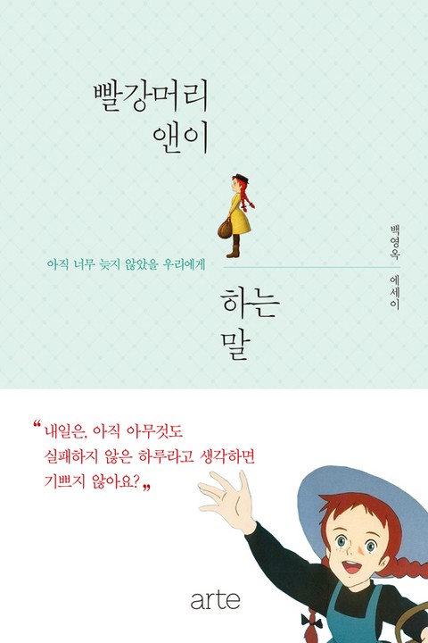 <스타일>, <다이어트의 여왕>, <아주 보통의 연애>, <애인의 애인에게>까지, 신작을 발표할 때마다 많은 독자들에게 큰 호응을 받고 있는 작가 백영옥에게도 빨강머리 앤은 루시 모드 몽고메리의 소설 속 앤이 아니라 지브리 애니메이션 속의 ‘빨강머리 앤’이었다. 작은 기쁨부터 큰 슬픔까지, 소녀시절을 수놓는 마음들을 쉴 새 없이 나누었던 앤과의 추억, 그리고 인생의 가장 힘겨웠던 고비마다 뜻밖의 위안과 웃음과 눈물을 선물한 앤의 이야기들을 이제부터 어른으로의 삶을 헤쳐가야 할, 일과 연애와 꿈의 좌절에 끊임없이 맞닥뜨려야 할 날들을 다독이는 격려의 말로 되살려냈다. 어떤 어려움이 닥쳐도 터무니없을 만큼 희망에 차 있던 앤을, 그 시절 마음에 깊이 새겼던 앤의 모습들과 함께 추억하는 일은, 우리가 한 번뿐인 삶을 사는 동안 가장 소중한 때를 놓치지 않고, 어쩌면 바로 지금쯤 돌아보아야 할 따뜻한 이야기들을 모아보는 일이다.