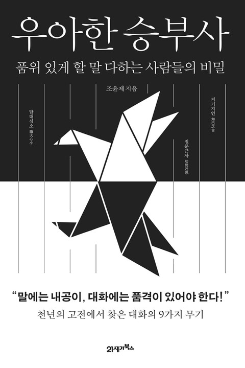 거친 말이 난무하는 세상에서 품격 있는 대화로 상황을 주도하는 사람들의 비밀을 담은 《우아한 승부사》. 20만 독자들을 사로잡은 《다산의 마지막 공부》 조윤제 작가가 대화의 내공과 품격을 키울 수 있는 9가지 방법을 소개한다.