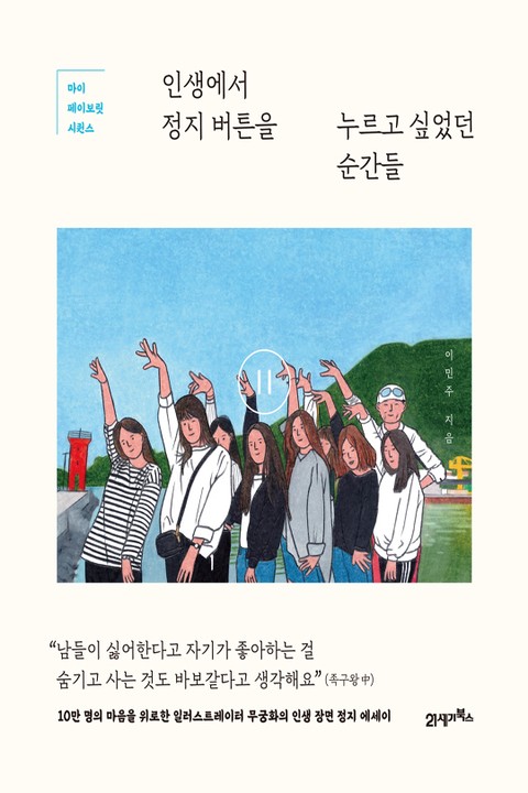 누구나 마음에 품고 사는 영화 하나쯤은 있다. “저 장면 완전 내 이야기 아니야?” 주인공의 감정에 공감하며 함께 울고 웃었던 자신만의 ‘페이보릿 시퀀스’가 있을 것이다. 영화를 보면서 ‘정지 버튼’을 누르고 그 장면을 곱씹어 보는 것은 바로 그 장면에서 ‘나 자신’을 발견했기 때문일지도 모른다. 영원히 그 장면에 멈춰있고 싶어서, 혹은 그 장면으로 돌아가서 그때와는 다른 선택을 하고 싶기도 해서. 10만 청춘들의 마음을 울린 인기 인스타그램 일러스트레이터 무궁화는 많은 사람들의 인생 영화로 꼽히는 장면들을 그려냈다. 『인생에서 정지 버튼 누르고 싶었던 순간들』은 우리의 평범한 일상을 영화처럼 느낄 수 있는 소소한 이야기들로 바쁜 일상을 ‘일시 정지’할 수 있는 기회가 될 것이다.