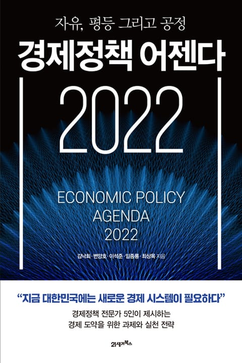경제정책 전문가들이 제시하는 대한민국 경제의 비전! 한국 경제 재도약을 위해 지금 무엇을 해야 하는가? 《경제정책 어젠다 2022》(21세기북스)는 경제 시스템 재구축을 위한 3가지 정책 과제와 하나의 실천 전략을 제시하는 책이다. 30년간 치열한 경제정책 현장의 최전선에서 활동한 저자들은 ‘자유롭고 평등하며 공정한 경제’의 비전을 바탕으로 대한민국 경제정책이 나아가야 할 길을 제시한다. 경제적 자유 확보를 위한 규제 개혁, 사회 안전망 구축과 공정한 경쟁 환경 조성을 위한 제도 도입을 우리 경제정책의 당면과제로 꼽으며, 그것을 추진하기 위해 ‘사회적 대타협’이 필요함을 역설한다. 2022년 새로운 정부 출범을 앞두고 있는 지금, 대한민국 경제의 낙후된 시스템을 냉정하게 분석하고 올바로 복원시키기 위한 정책 과제를 제시함으로써 우리 경제가 다시 한번 힘차게 도약할 수 있는 전략을 찾는다.