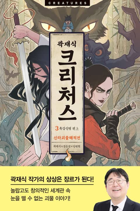 『크리처스』는 오랫동안 우리 전통 설화와 민담, 문헌 기록 속 토종 괴물들을 집요하게 채집해 온 괴물 박사(?) 곽재식의 야심작이다. 곽재식은 그 어느 때보다 재미있는 이야기를 보여 주겠다고 작심이라도 한 듯, 신비하고도 생동감 넘치는 토종 괴물들을 우리 앞에 소환시킨다. 곽재식 작가의 재기발랄한 입담이 다수의 애니메이션 시나리오를 써 온 정은경 작가와 안병현 그림작가를 만나 한국형 판타지 시리즈물, 『크리처스』로 우리를 찾아왔다.