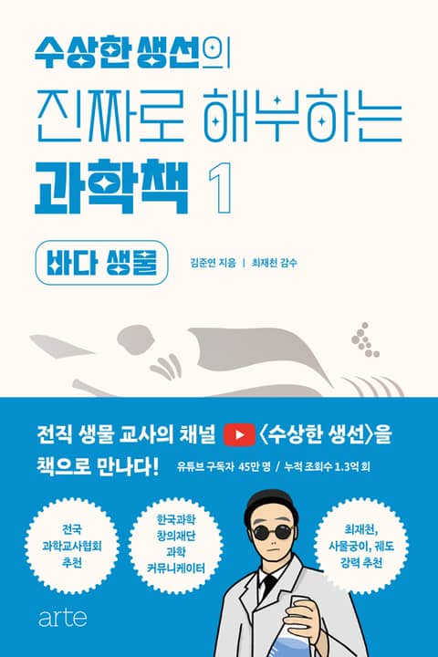 잘 안다고 생각했지만 제대로 알고 있지 못했던 우리 주변의 생물들에 대한 궁금증을 해결하며 45만 유튜브 구독자를 사로잡은 과학 채널 〈수상한생선〉의 콘텐츠가 아르테에서 『수상한생선의 진짜로 해부하는 과학책』1권(바다 생물), 2권(육상 생물)으로 출간되었다.