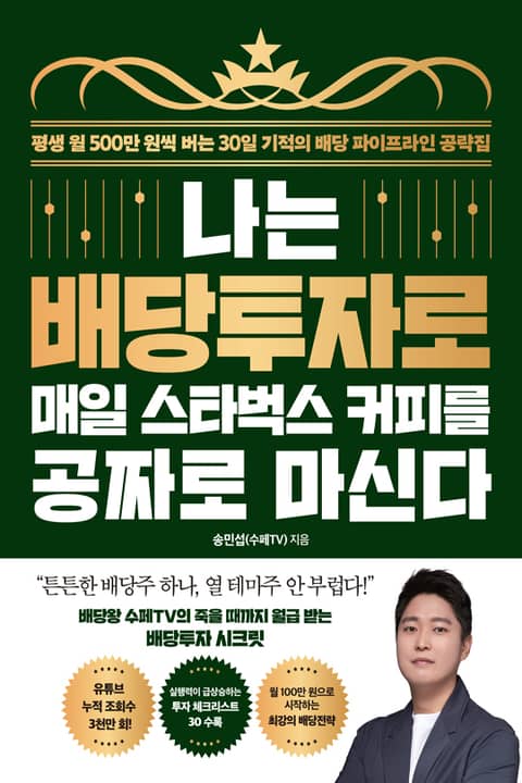 빠른 시장 트렌드 분석과 꼼꼼한 투자 지식으로 초중급 주식투자자들에게 신뢰를 얻고 있는 유튜브 채널 ‘수페TV’는 다년간 한국 주식은 물론이고 미국 주식에 투자하며 경제적 자유를 이루는 데 성공한 파이어족이다. 개인투자자로서 튼튼한 부의 파이프라인을 얻기까지 겪었던 수많은 실패와 성공 사례를 연구해 낮은 리스크로 꾸준한 수입을 얻을 수 있는 최상의 배당투자 전략을 정리했고, 그 결과물과 실전 노하우를 『나는 배당투자로 매일 스타벅스 커피를 공짜로 마신다』에 오롯이 담았다.