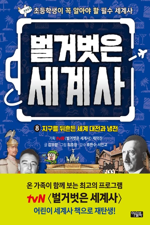 <벌거벗은 세계사>에서는 그리스, 중국, 이탈리아, 이집트, 스페인, 영국, 프랑스, 미국 등 여러 나라의 중요한 사건과 인물들을 만날 수 있습니다. 8권에서는 전 세계를 전쟁터로 만든 제1, 2차 세계 대전과 자본주의 체제와 공산주의 체제가 대립한 냉전에 관한 여행이 펼쳐집니다. 두 차례의 세계 대전이 시작된 계기는 무엇인지, 그리고 어떻게 영국, 프랑스, 독일, 러시아 등의 강대국이 모두 참전하는 대규모 전쟁으로 커졌는지를 알아봅니다. 또한 인류 최악의 발명품이라고 불리는 원자 폭탄의 개발과 투하, 이후 남은 전란의 여파에 대한 이야기를 들을 수 있습니다. 20세기 세계사의 판도를 바꾼 세계 대전과 냉전, 그 숨겨진 역사를 낱낱이 벌거벗겨 봅시다.