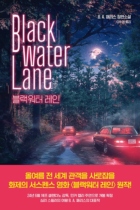 이번에 출간된 장편소설 『블랙워터 레인』은 작가의 두 번째 작품 『브레이크 다운』의 리커버 에디션으로, 영화 개봉에 맞춰 영화와 동일한 제목으로 바꿔 유명 일러스트 작가 KUSH의 아트워크로 소설 속 중요 사건을 영화의 한 장면처럼 표현한 디자인으로 새롭게 선보인다. 출간하는 작품마다 《뉴욕타임스》 베스트셀러에 오르며 전 세계 700만 부 판매를 돌파하여 밀리언셀러 작가가 된 B. A. 패리스. 이제는 그녀의 전매특허가 된 특유의 긴박한 속도감과 공포감을 제대로 즐기고 싶다면, 무더운 여름을 영화와 함께 몇 배로 서늘하게 해줄 원작 소설 『블랙워터 레인』이 최고의 선택이 될 것이다.