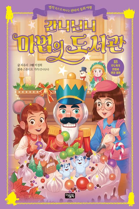 열여덟 번째 이야기인 ‘호두까기 인형과 생쥐 대왕’에서 간니, 닌니는 생쥐들과 전쟁 중인 장난감들을 만납니다. 의기소침해진 장난감들을 도와 간니와 닌니는 잡혀간 호두까기 인형을 구하고, 세상에서 가장 단단한 호두를 찾고, 생쥐들을 물리치는 등 위험하고, 막막한 상황에서도 용감한 행동을 주저하지 않습니다. 그리고 드디어 쿱들을 이야기 왕국으로 보낸 범인이 드러나는데요. 시리즈를 거듭할수록 흥미진진해지는 《간니닌니 마법의 도서관》! 환상적인 모험이 여러분을 찾아갑니다.