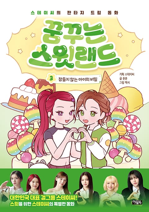 어린이들에게 희망과 용기를 전하는 특별한 동화책, 〈꿈꾸는 스윗랜드〉가 찾아왔다. 아이돌 스테이씨는 어린이 스윗(스테이씨 공식 팬덤명)에 대한 애정과 응원을 담뿍 담아 도서 개발에 참여했다. 스테이씨는 우정, 사랑, 꿈 등의 여러 가지 고민으로 잠들지 못하는 스윗들에게 들려주고 싶은 따뜻한 메시지를 준비했다. 특히 스테이씨가 직접 개발에 참여한 캐릭터 위씨들이 수면 요정으로 깜짝 변신했다. 위씨들은 스윗랜드를 지키기 위해 어린이들과 힘을 합친다. 스테이씨와 닮은 귀여운 여섯 명의 친구들과 함께하다 보면, 고민이 스르륵 풀리고 어느새 달콤한 잠이 찾아올 것이다.