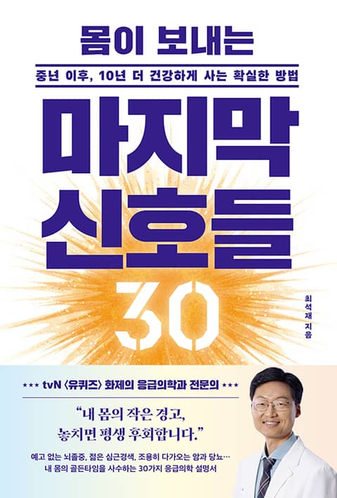 예고 없이 찾아오는 뇌졸중과 심근경색, 조용히 진행되는 암과 당뇨는 현대인의 건강을 위협하는 치명적인 질병이다. 19년간 응급실에서 수많은 생명을 살려온 응급의학과 전문의 최석재는 이러한 위기가 장기간 몸에서 보낸 신호를 놓친 결과라고 말한다. 『몸이 보내는 마지막 신호들 30』은 질병의 ‘신호’를 조기에 파악하고, 골든타임 안에 대처하는 법에 초점을 맞춘다. 단순한 응급 대처법뿐만 아니라 질병의 근본 원인을 해결하는 습관의 중요성도 강조한다. 이 책은 알아채고, 연결하고, 행동하는 건강의 선순환을 돕는 실질적인 지침서이다.